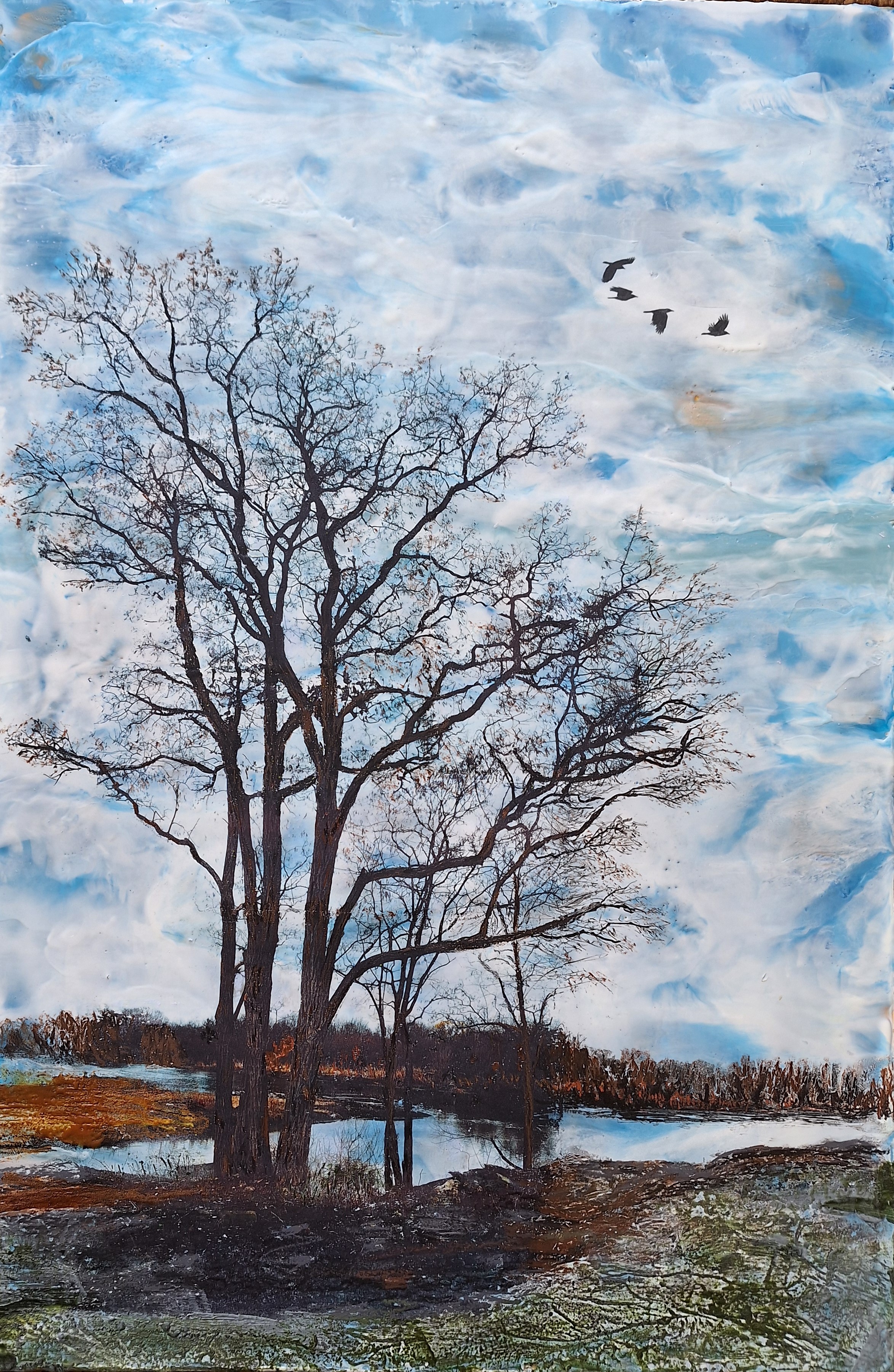 Hieblinger, Reconnaissance, encaustic,36x24x2, $750