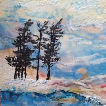 Hieblinger, Spring Thaw, encaustic, 12x12x1.5, $125